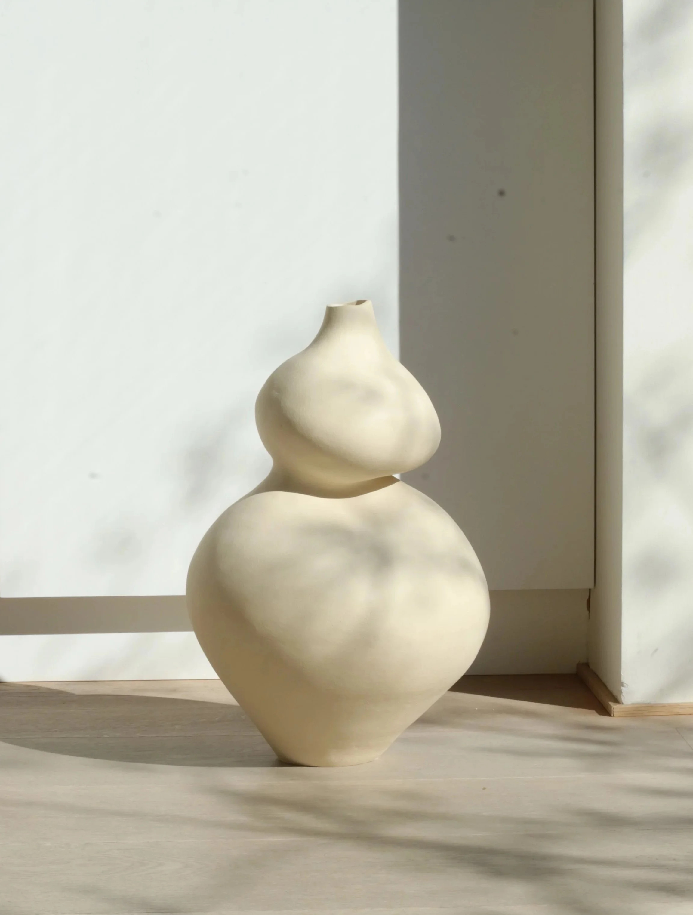 Ongedwongen, organische sculpturen waarbij ik niet streef naar dé perfecte vorm en de pure klei zichtbaar laat.